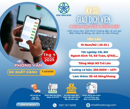 TUYỂN GIAO DỊCH VIÊN LÀM VIỆC TRÊN TOÀN NƯỚC NHẬT - CÔNG VIỆC HẤP DẪN
