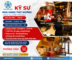 Tuyển 2 nữ Kỹ Sư Nhà Hàng, làm việc trong môi trường chuyên nghiệp, yêu thích ẩm thực, nấu ăn thì đây là một lợi thế dành cho các bạn. Đừng bỏ lỡ nhé!