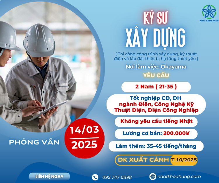 [OKAYAMA] KỸ SƯ XÂY DỰNG LƯƠNG CAO NGẤT NGƯỠNG PHÚC LỢI RẤT NHIỀU