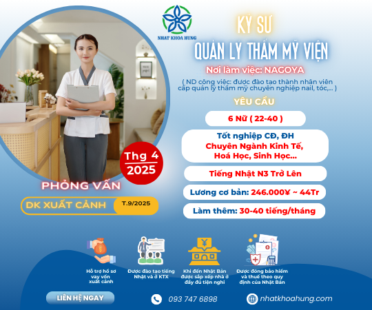 [NAGOYA] TUYỂN QUẢN LÝ THẨM MỸ VIỆN CÔNG VIỆC PHÙ HỢP VỚI CÁC BẠN NỮ THÍCH LÀM ĐẸP