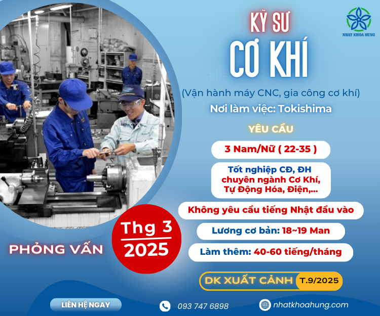 Chưa biết tiếng Nhật nhưng riêng đơn hàng này vẫn sẽ đi được! Lương cao, việc ổn định trong tầm tay thì nhanh tay apply ngay nè các bạn nam chuyên ngành cơ khí, điện,... thì nhanh tay nào để được tư vấn miễn phí!