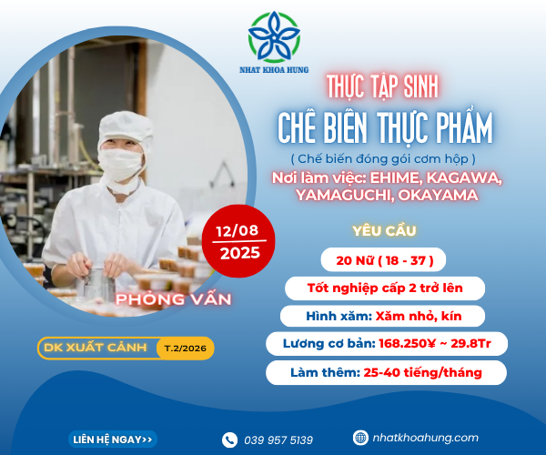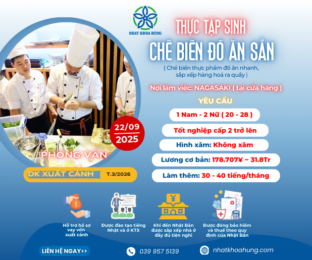 | NAGASAKI | CẦN TUYỂN NGƯỜI CHO ĐƠN CHẾ BIẾN ĐỒ ĂN SẴN TẠI NHẬT BẢN