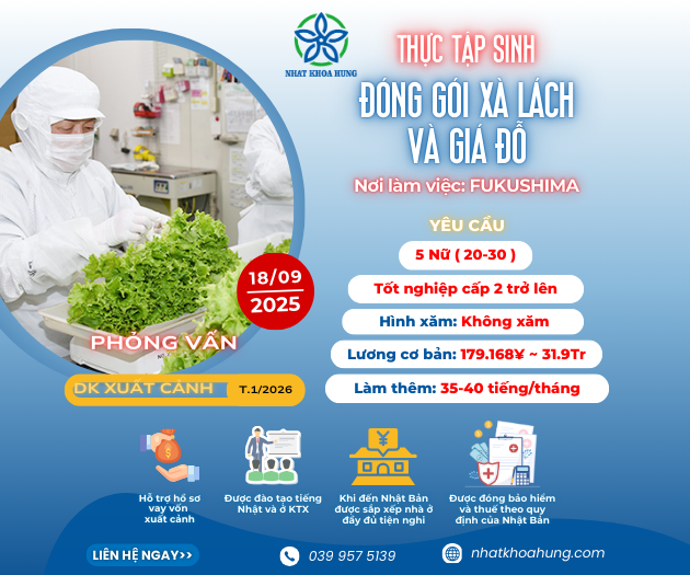 | FUKUSHIMA | LÀM VIỆC ĐÓNG GÓI XÀ LÁCH VÀ GIÁ ĐỖ TẠI NHẬT BẢN
