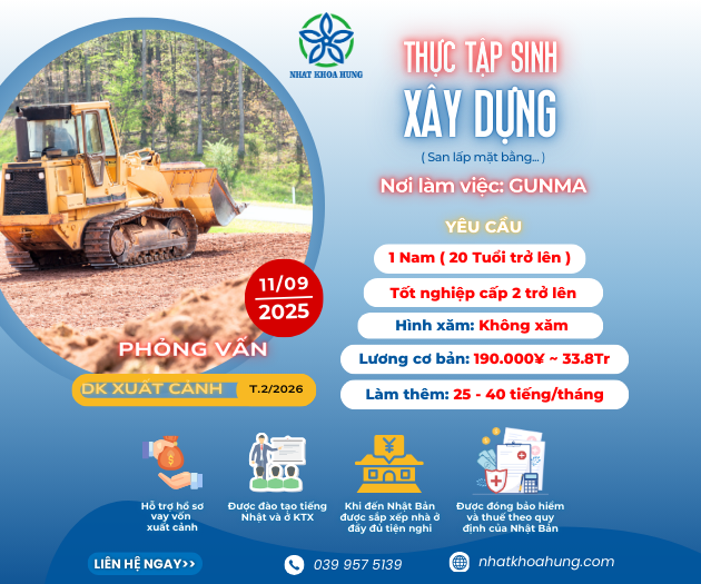 | GUNMA | THÁNG 9 CÓ LỊCH PHỎNG VẤN ĐƠN XÂY DỰNG THU NHẬP HẤP DẪN